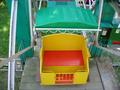 一般的な左右に椅子のあるゴンドラ型ではなく、2人掛けの椅子にビニールの屋根がついており、