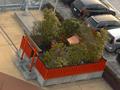 乗車してすぐ真下を見ると、ビルの屋上の駐車場に面したところに鳥居が見えた。なぜか小さい神社のようになっていた。