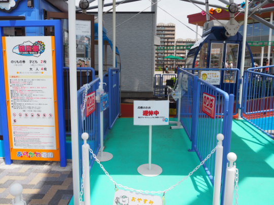 入退場口にはよく見ると係員スペースが観覧車を模したらしきデザインになっている