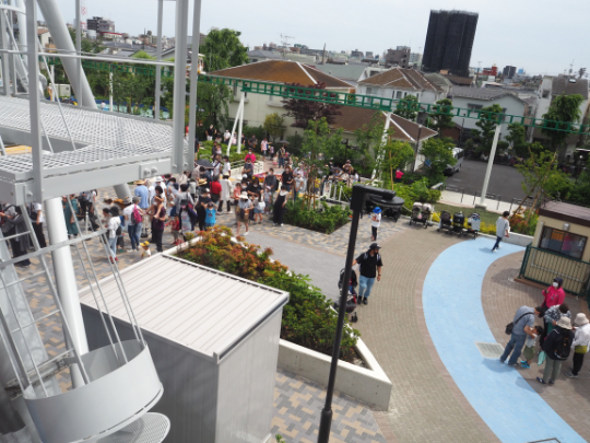 運転開始に気づいた人たちが次々と観覧車に並び始めた