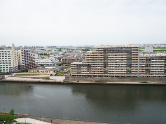 隅田川を隔てて対岸にはマンション。さぞかしよく観覧車が見えることだろう。