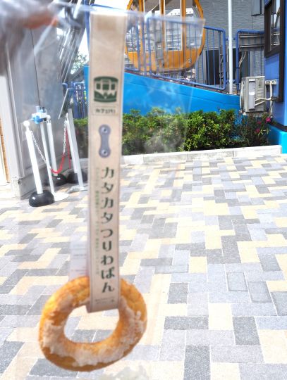 そろそろおなかがすいてきたので「つりわぱん」という、つり革を模したパンをかじっていると、観覧車が試運転のため回り始めた。