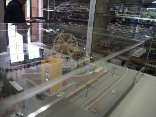 映り込みがひどくてわかりづらいが、ミニジオラマには観覧車のオブジェも置いてあった。
